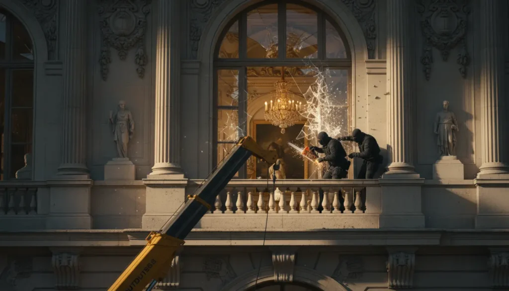 The lightning-fast heist lasted only eight minutes and has gained worldwide attention. Sixty investigators are now searching for the culprits, with initial investigations pointing towards organized crime. The robbery occurred around 9:30 AM on Sunday when the thieves parked a crane under a museum balcony. Two individuals ascended and used a chainsaw to enter the Apollo Gallery through a window.